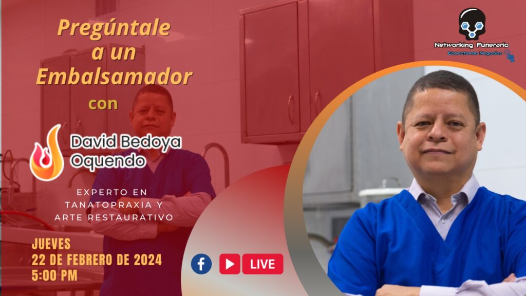 ¿Alguna vez te has preguntado sobre el arte detrás de la tanatopraxia y la restauración en el servicio funerario? Únete a nosotros mientras David Bedoya Oquendo comparte su basta experiencia y responde a tus preguntas en una sesión interactiva.